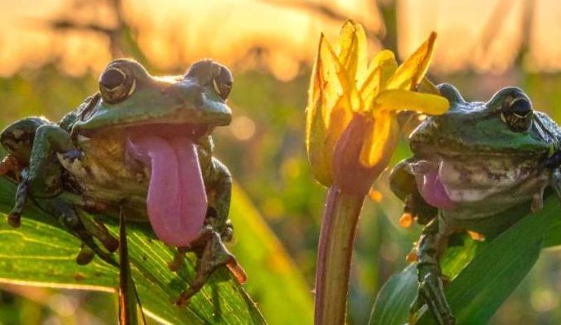 Sie hüpfen, quaken, schwimmen...