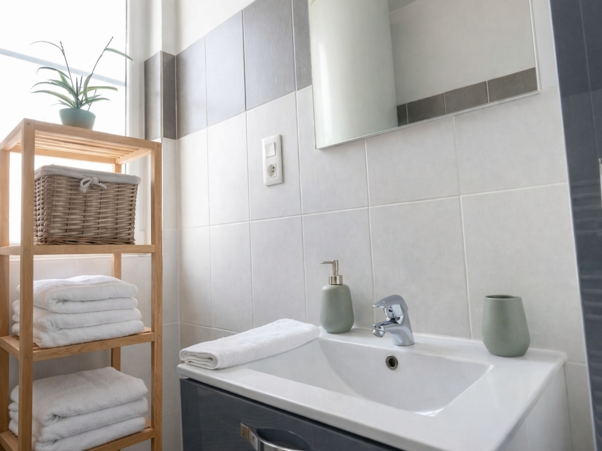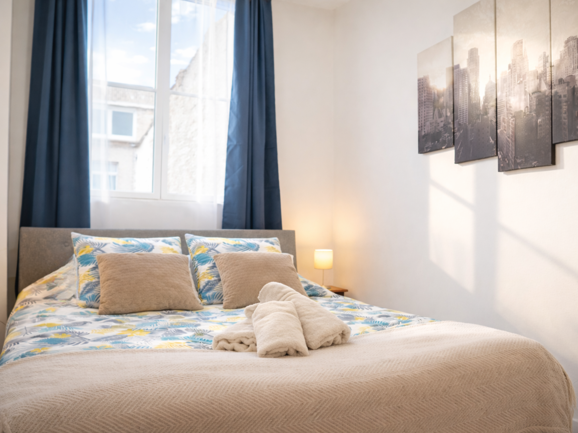 Unsere Wohnungen vom Typ T2 "Angenehmer Familienkokon" befinden sich in der Rue de l'Arbalète 43 in Saint-Omer. Sie sind vollständig möbliert und ausgestattet und verfügen über Wi-Fi-Anschluss und kostenlose Parkplätze in einem privaten und gesicherten Hof der Residenz.