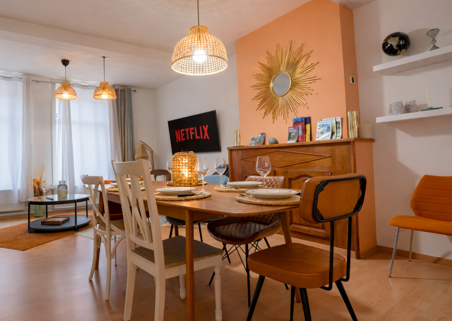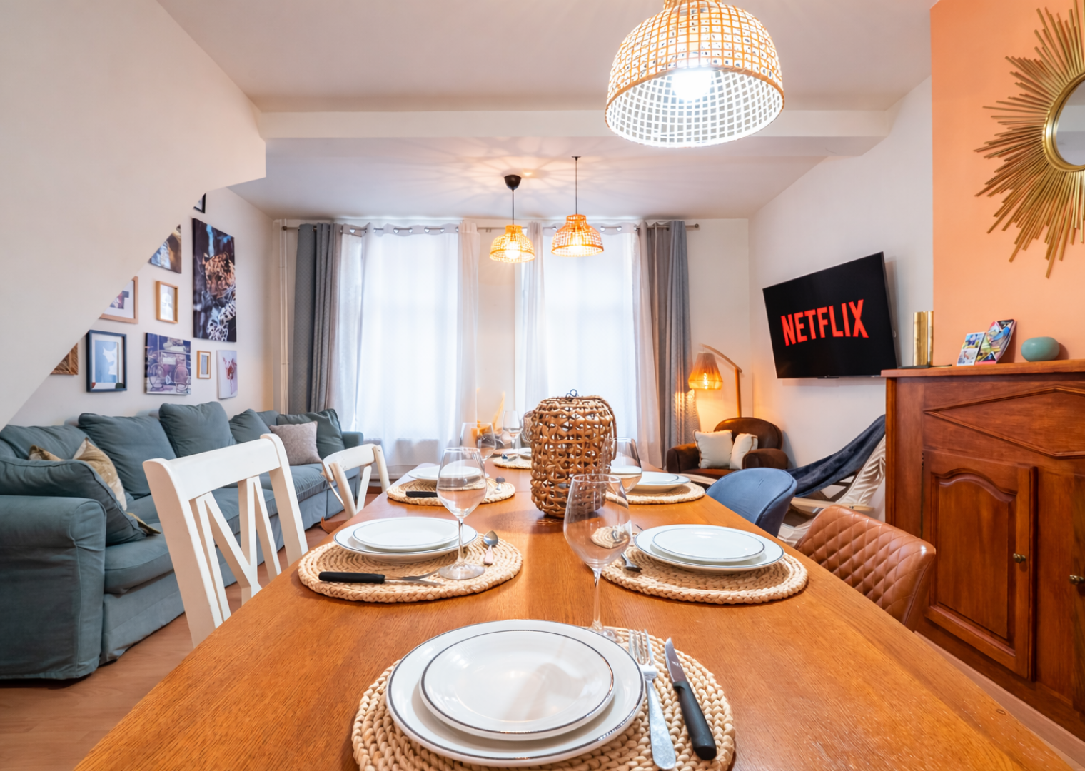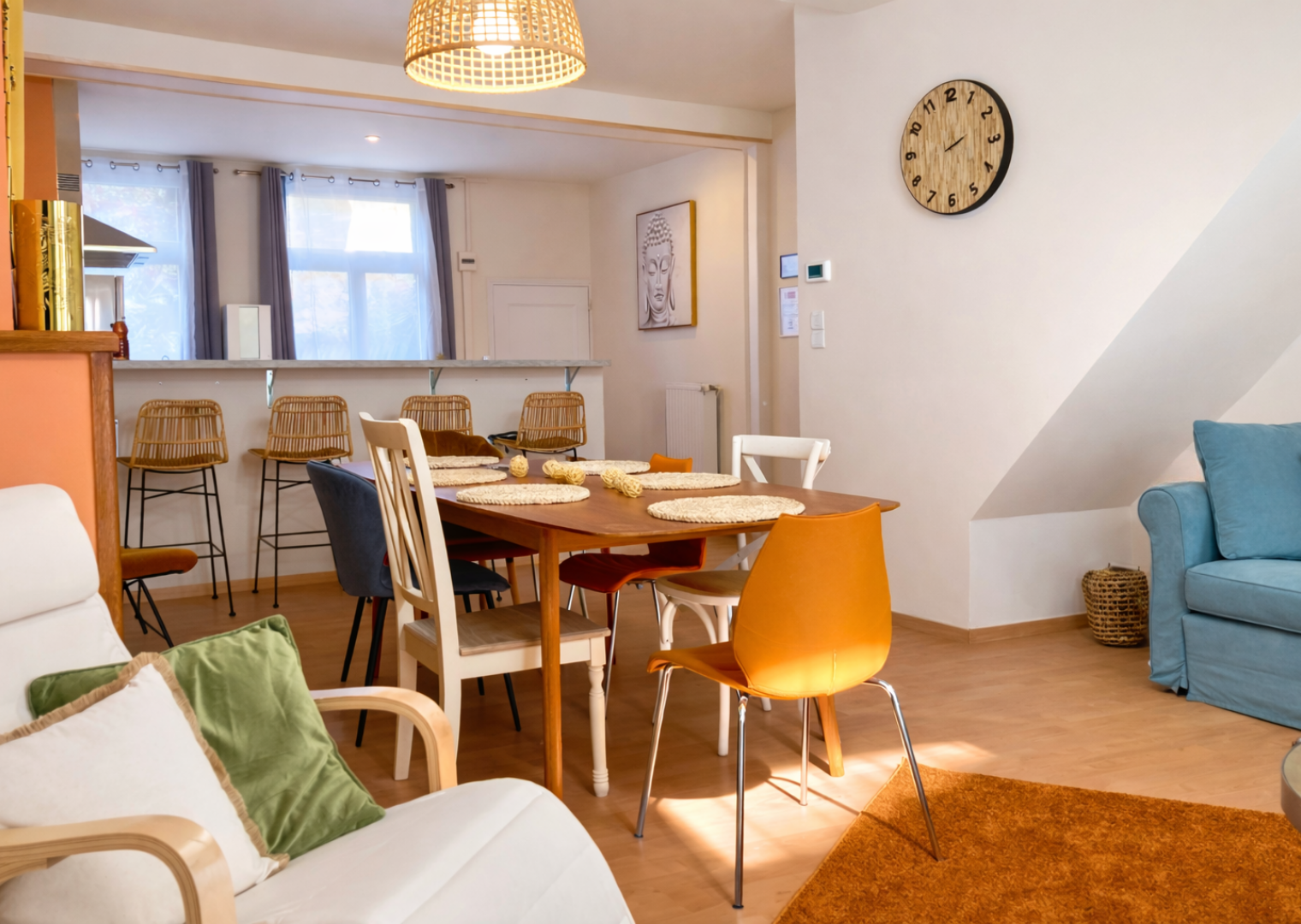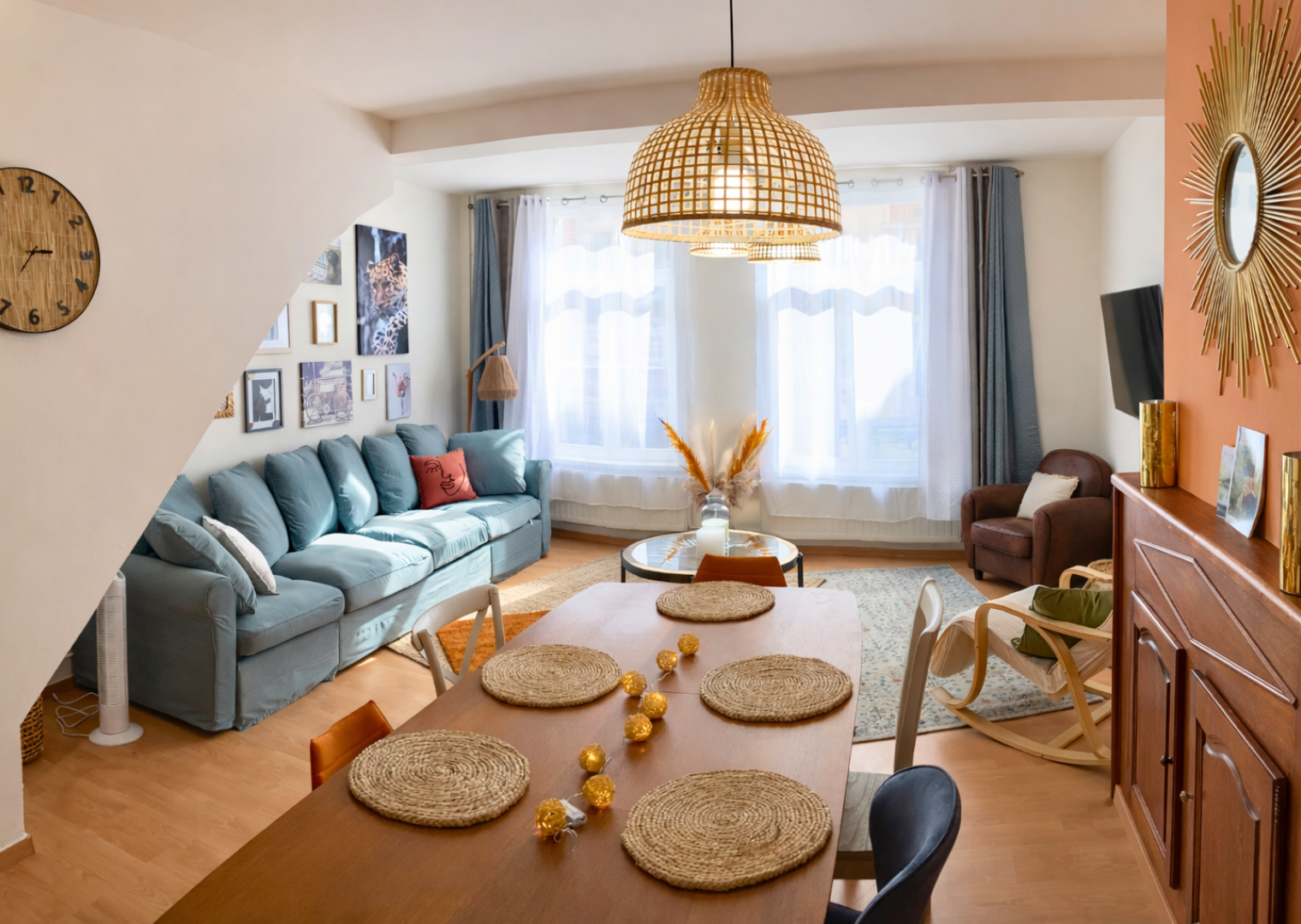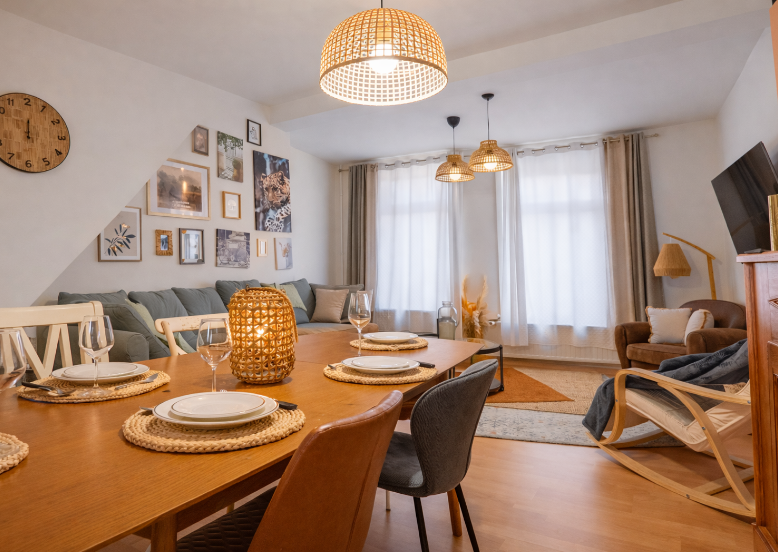 Unsere Wohnung befindet sich in der Rue des Clouteries in Saint-Omer, nur wenige Schritte vom Grand-Place entfernt. Sie ist komplett möbliert und ausgestattet: vier Schlafzimmer mit Doppelbetten und eigenem Bad, moderne Küche (Geschirrspüler, Mikrowelle, Kaffeemaschine), großer Wohnbereich mit angeschlossenem Fernseher und Wi-Fi.
