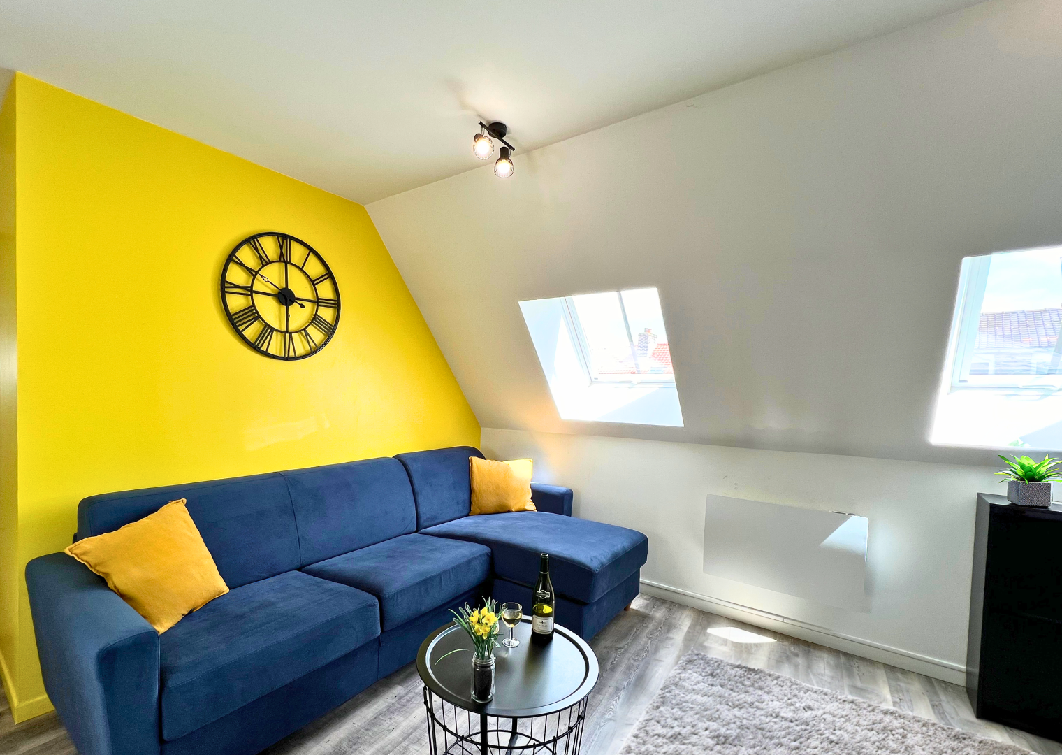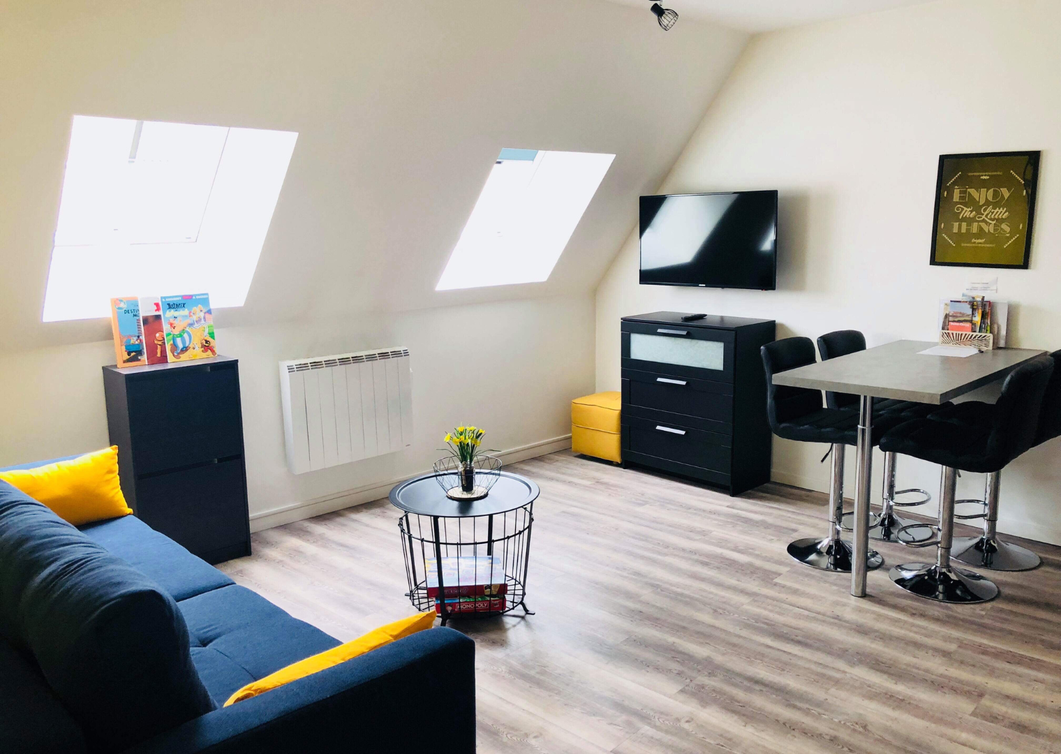 Unsere Wohnungen vom Typ T2 "Le Chez-Soi" befinden sich in der Rue de l'Arbalète 43 in Saint-Omer. Sie sind vollständig möbliert und ausgestattet und verfügen über Wi-Fi und kostenlose Parkplätze in einem privaten und gesicherten Hof der Residenz.