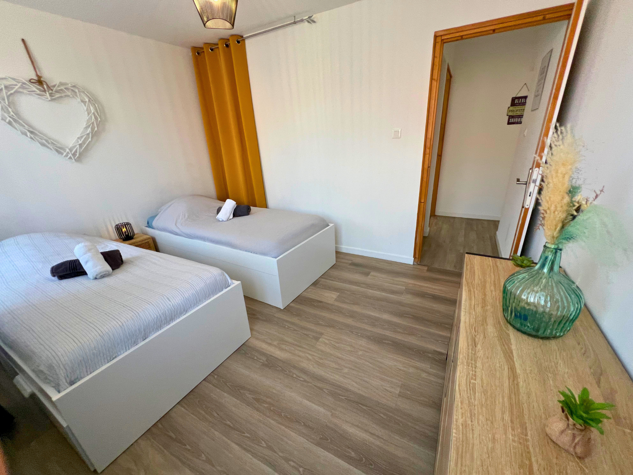 Unsere Unterkünfte mit Einzelbetten bestehen aus zwei separaten Schlafzimmern mit jeweils zwei Einzelbetten; einem Badezimmer mit Badewanne und Dusche und einer Waschmaschine; einer Küche mit Geschirrspüler, Mikrowelle, Toaster, Kühlschrank, Wasserkocher und Kaffeemaschine; einem großen Wohnzimmer mit einem Schlafsofa für zwei Personen und Fernseher mit Netflix.