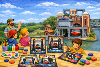 Avec notre médiateur, partez à la découverte de l’Ascenseur à Bateaux des Fontinettes qui fait monter et descendre les bateaux, grâce à l’eau ! Après la découverte de l'architecture et des matières qui composent cet édifice, amusez-vous à créer la silhouette de votre propre ascenseur à bateaux en peinture, avec des pinceaux, des éponges et plein d’autres outils colorés !