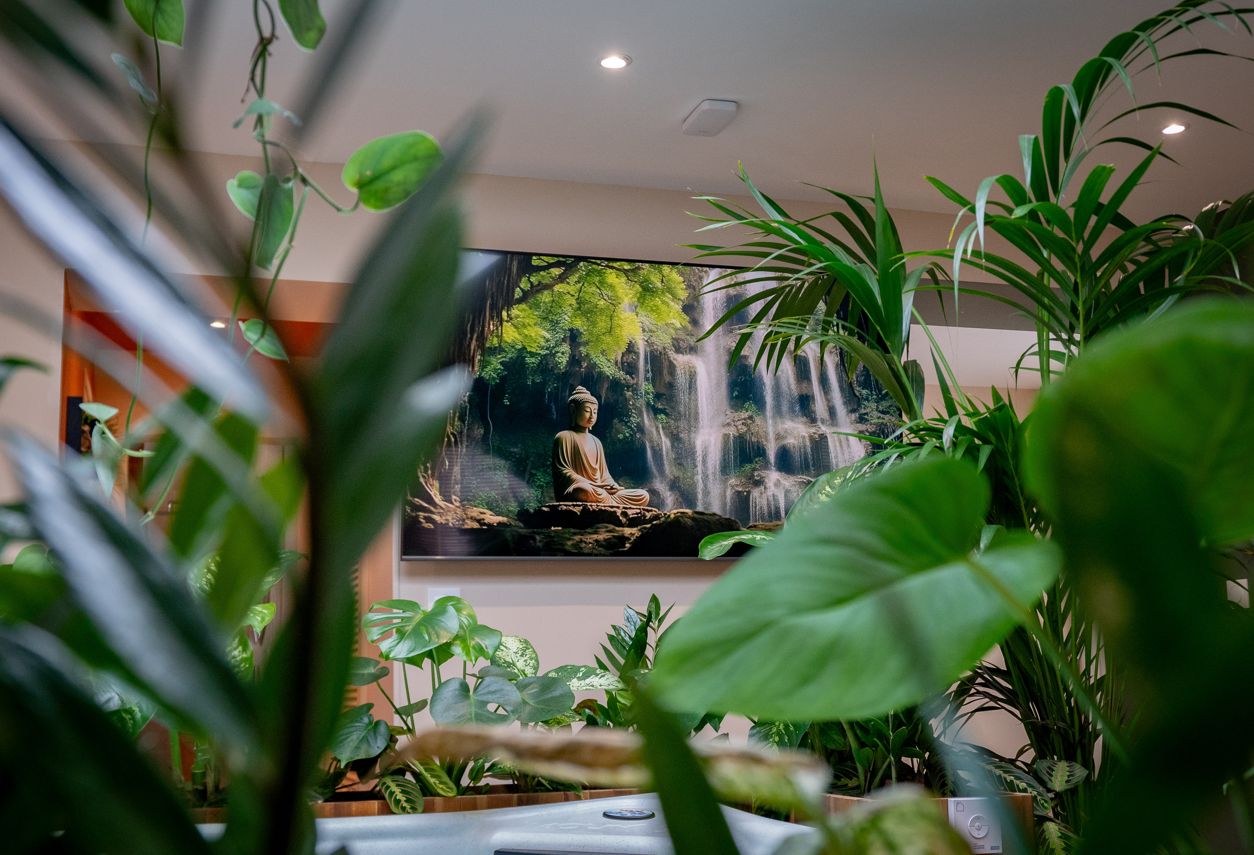 Derrière la porte, un cocon tropical de 60 m² s’ouvre à vous. Les jeux de lumière sculptent les volumes, la végétation luxuriante apaise l’esprit et le doux murmure de l’eau enveloppe l’espace. Le spa privatif, pièce maîtresse de la suite, promet des instants de relaxation absolue, en toute intimité. Matières naturelles, teintes exotiques et décoration soignée composent un univers chaleureux où chaque détail prolonge l’évasion.